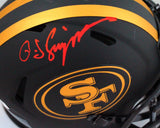 OJ Simpson Autographed 49ers Eclipse Mini Helmet- JSA W *Red This is an OJ Simpson of the 49ers hand autographed Riddell Football Eclipse Speed Mini Helmet. This item has Beckett Witnessed Protection Authentication, which comes with a numbered sticker hologram and a matching Beckett Certificate of Authenticity. You can view this item on the Beckett website and it shows when and where the item was signed. It was signed either at a public autograph appearance or a private signing. This is a stock photo of the item. Although you may not receive this exact item, the item you receive is virtually identical, brand new, and in great shape.