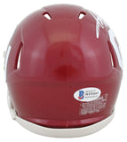 This Autographed Speed Mini Helmet has been Personally Signed by Adrian Peterson of the Oklahoma Sooners. This item is 100% Authentic to include a hologram by Beckett Authentication Services. This item will come with the new Beckett Authentication hologram that has a scannable QR code rather than the traditional COA. If you would like to have a COA, you are welcome to reach out to Beckett for a printed certification once you receive your item. This is a BAS Witnessed Protection Program item which means a Beckett Authentication Service representative was present when this item was being signed. This is a stock item. We conducted an autograph signing with Adrian Peterson where multiples of the same item were signed. While the photographs are representative of this item, the size, placement and strength of the signature may vary. Each item is hand signed, therefore, each autograph is unique. This item can be verified through BAS Witnessed.
