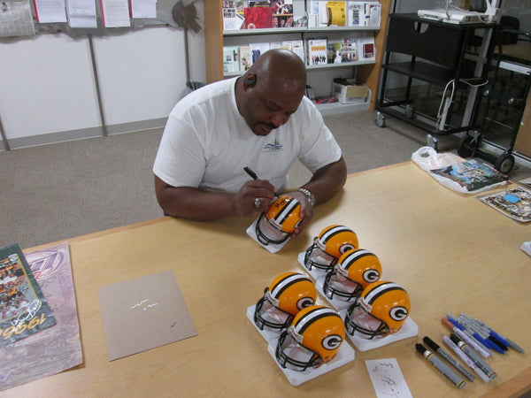Green Bay Packers Mini Helmet hand signed by former Green Bay Packer tight end KEITH JACKSON. The signature is Mint in Black sharpie. JACKSON was a member of the PACKERS SUPER BOWL XXXI Championship Team!. This Mini Helmet was signed at a private signing in our store and would make a great addition to any PACKERS collection! This item is guaranteed to be 100% authentic and will include a Certificate of Authenticity with our tamper proof matching holograms.