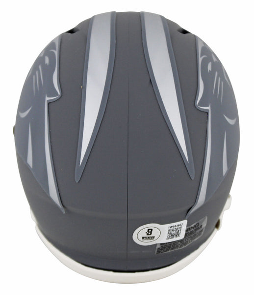 This Autographed Alternate Slate Speed Mini Helmet has been Personally Signed by Julius Peppers of the Carolina Panthers. This item is 100% Authentic to include a hologram by Beckett Authentication Services. This item will come with an affixed Beckett Authentication Services (BAS) authentication sticker, which includes a scannable QR code to verify authenticity. Please note that Beckett no longer provides serial-numbered COA cards, and the attached BAS sticker will serve as the complete authentication for this item. This is a BAS Witnessed Protection Program item which means a Beckett Authentication Service representative was present when this item was being signed. We conducted an autograph signing with Julius Peppers where multiples of the same item were signed. While the photographs are representative of this item, the size, placement and strength of the signature may vary. Each item is hand signed, therefore, each autograph is unique. This item can be verified through BAS Witnessed.
