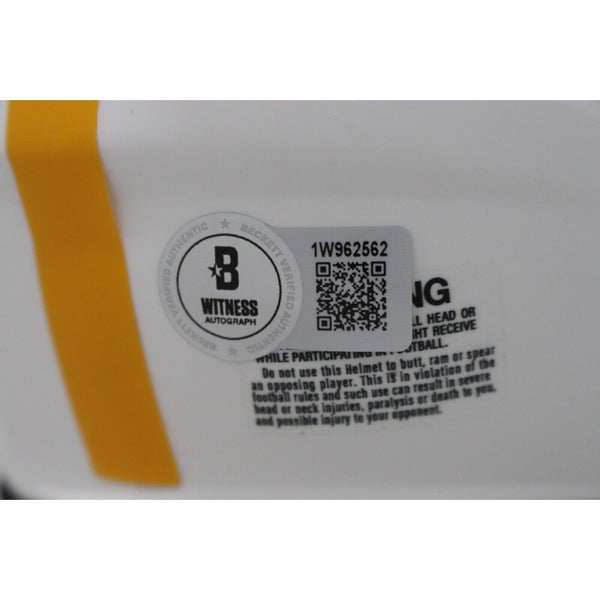 The number in the listing title is just an inventory sku for our records and is not the authentication number. The item pictured is a stock photo unless otherwise noted. This is a Pittsburgh Steelers Lunar Mini Helmet that was personally autographed by Pat Freiermuth. Includes a certificate of authenticity from Beckett Grading Services (BAS) and Denver Autographs.FREE SHIPPING within the USA on orders over $10!