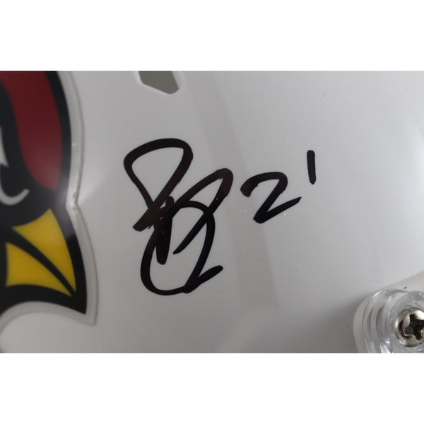 The number in the listing title is just an inventory sku for our records and is not the authentication number. This is a stock photo, unless otherwise noted. This is an Arizona Cardinals Speed Mini Helmet that was personally autographed by Patrick Peterson. Includes a certificate of authenticity from Beckett Authentication Services (BAS) and Denver Autographs.