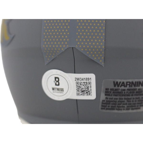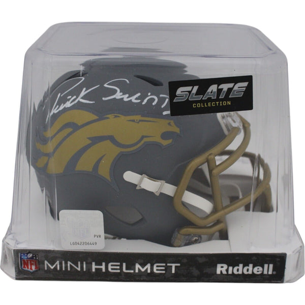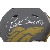 The number in the listing title is just an inventory sku for our records and is not the authentication number. The item pictured is a stock photo unless otherwise noted. This is a Denver Broncos Slate Speed Mini Helmet that was personally autographed by Patrick Surtain. Includes a certificate of authenticity from Beckett Authentication Services (BAS) and Denver Autographs.