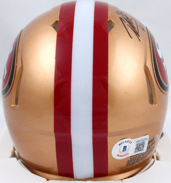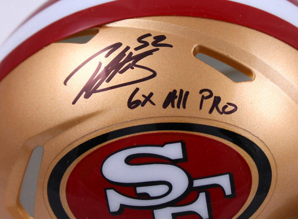 Patrick Willis Autographed San Francisco 49ers Speed Mini Helmet w/6x All Pro- Beckett W Hologram *Black This is a Patrick Willis of the San Francisco 49ers hand autographed Riddell Speed mini helmet. Inscribed 6x All Pro. This item has a Beckett Witnessed Authentication, which comes with a Beckett numbered hologram and a QR code for verification. You can view this item on the Beckett Authentication website. It was signed either at a public autograph appearance or a private signing. This is a stock photo of the item. Although you may not receive this exact item, the item you receive is virtually identical, brand new, and in great shape.