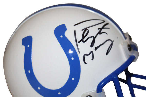 Peyton Manning Signed Indianapolis Colts Authentic Mini Helmet FAN 38954 The number in the listing title is just an inventory sku for our records and is not the authentication number. The item pictured is a stock photo unless otherwise noted. This is a Indianapolis Colts authentic mini helmet that was personally autographed by Peyton Manning. Includes a Fanatics Authentic hologram and a certificate of authenticity from Denver Autographs.