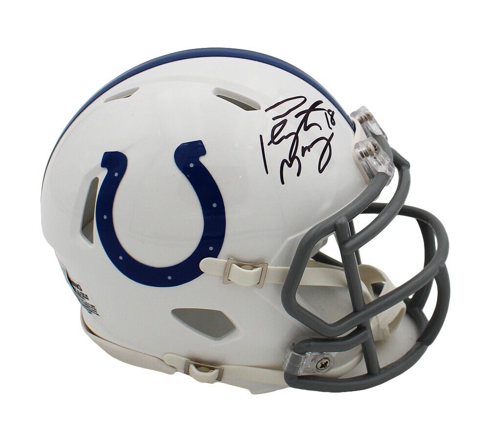 An Indianapolis Colts Speed NFL Mini Helmet hand signed by Peyton Manning. The item and signature are in excellent condition. Peyton was drafted into the NFL in 1998. He is a 2x Super Bowl champion, and is a Super Bowl MVP. Peyton was the 5x NFL MVP. He was also the 2x NFL Offensive Player of the Year. AUTHENTICATION: The item is accompanied by a Fanatics Authentic Serial Numbered and Databased Hologram