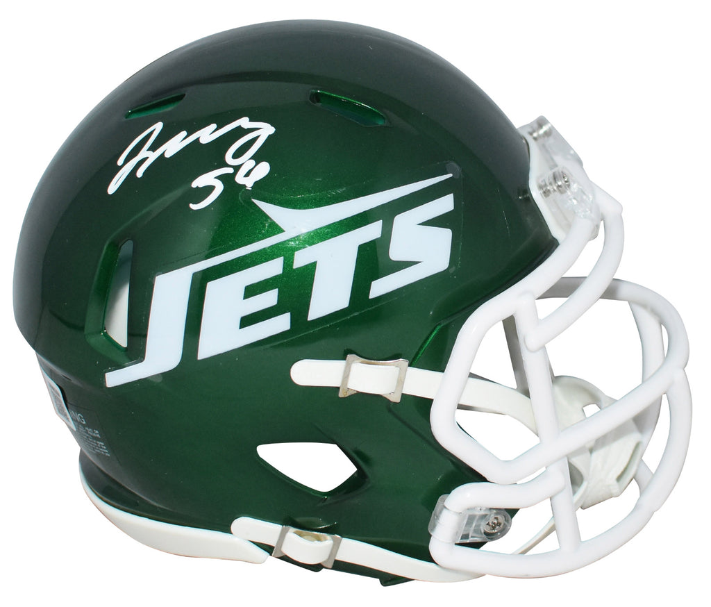 Quincy Williams, All-Pro linebacker for the New York Jets, has hand signed this Jets Riddell Speed mini helmet at a private signing. This item is authenticated by Beckett Authentication Services and was signed in the presence of one of their representatives. Their tamper-evident hologram featuring a QR code and serial number is on the item. The authenticity can be verified online by entering the serial number or scanning the QR code.Item pictured may not be the exact item you will receive. It will be similar quality, and we guarantee your satisfaction.
