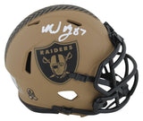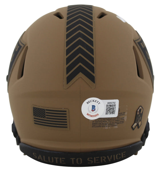 This Autographed Alternate 2023 Salute To Service II Speed Mini Helmet has been Personally Signed by Michael Mayer of the Las Vegas Raiders. This item is 100% Authentic to include a hologram by Beckett Authentication Services. This item may come with the new Beckett Authentication hologram that has a scannable QR code rather than the traditional COA. If you would like to have a COA, you are welcome to reach out to Beckett for a printed certification once you receive your item. This is a BAS Witnessed Protection Program item which means a Beckett Authentication Service representative was present when this item was being signed. We conducted an autograph signing with Michael Mayer where multiples of the same item were signed. While the photographs are representative of this item, the size, placement and strength of the signature may vary. Each item is hand signed, therefore, each autograph is unique. This item can be verified through BAS Witnessed.