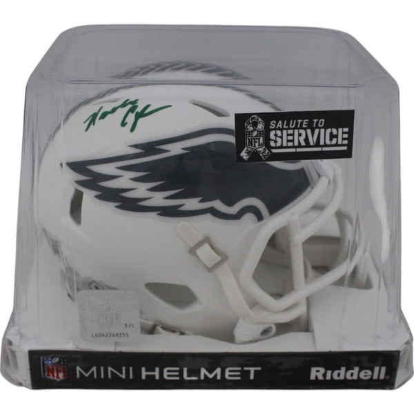 The number in the listing title is just an inventory sku for our records and is not the authentication number. The item pictured is a stock photo unless otherwise noted. This is a Philadelphia Eagles 2024 Salute to Service Mini Helmet that was personally autographed by Randall Cunningham. Includes a certificate of authenticity from Beckett Authentication Services (BAS) and Denver Autographs.FREE SHIPPING within the USA on orders over $10!