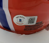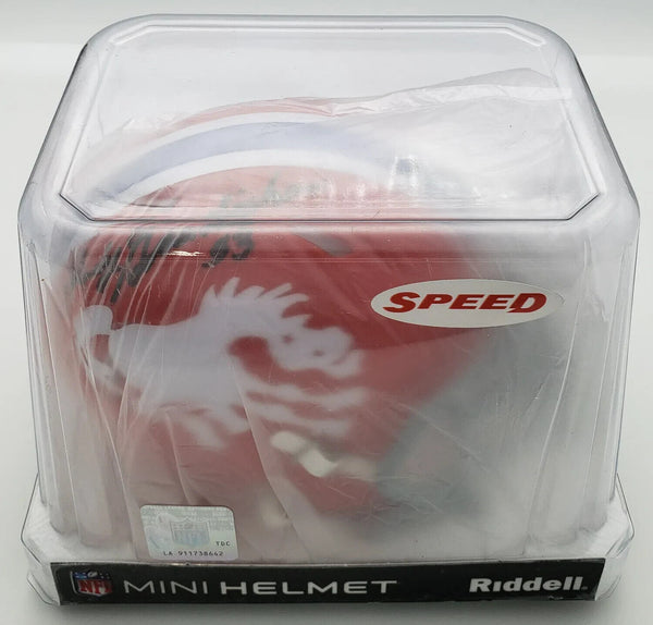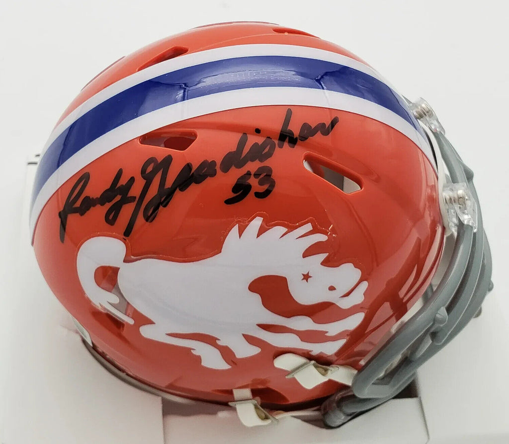 This autographed Riddell speed mini helmet has been personally hand-signed by Randy Gradishar of the Denver Broncos.This autograph is certified by Beckett Authentication Services (BAS) Witness Certification. That means that a Beckett representative was present when this item was signed. It comes with the numbered authentication hologram with a QR code card that verifies the authentication on the Beckett website.