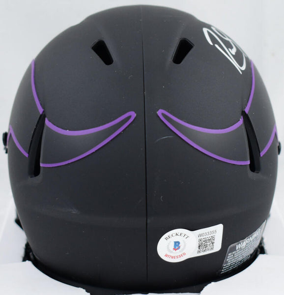 Randy Moss Autographed Minnesota Vikings Eclipse Speed Mini Helmet- Beckett W Hologram *Silver This is a Randy Moss of the Minnesota Vikings hand autographed Riddell Football Eclipse Speed Mini Helmet. This item has a Beckett Witnessed Authentication, which comes with a Beckett numbered sticker hologram and a QR code for verification. You can view this item on the Beckett Authentication website. It was signed either at a public autograph appearance or a private signing. This is a stock photo of the item. Although you may not receive this exact item, the item you receive is virtually identical, brand new, and in great shape.