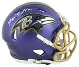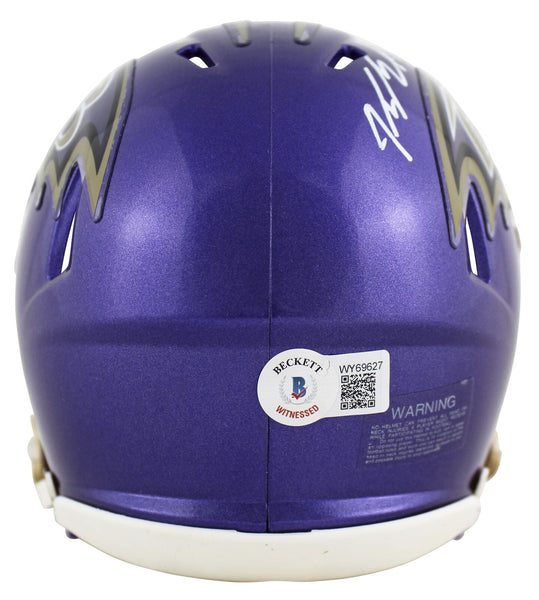 This Autographed Alternate Flash Speed Mini Helmet has been Personally Signed by Kyle Hamilton of the Baltimore Ravens. This item is 100% Authentic to include a hologram by Beckett Authentication Services James Spence Authentication. This item may come with the new Beckett Authentication hologram that has a scannable QR code rather than the traditional COA. If you would like to have a COA, you are welcome to reach out to Beckett for a printed certification once you receive your item, or it will come with the JSA hologram and numbered COA. This is a BAS or JSA Witnessed Protection Program item which means a Beckett Authentication Service or JSA representative was present when this item was being signed. We conducted multiple autograph signings with Kyle Hamilton where multiples of the same item were signed. While the photographs are representative of this item, the size, placement and strength of the signature may vary. Each item is hand signed, therefore, each autograph is unique. This item can be verified through BAS Witnessed.