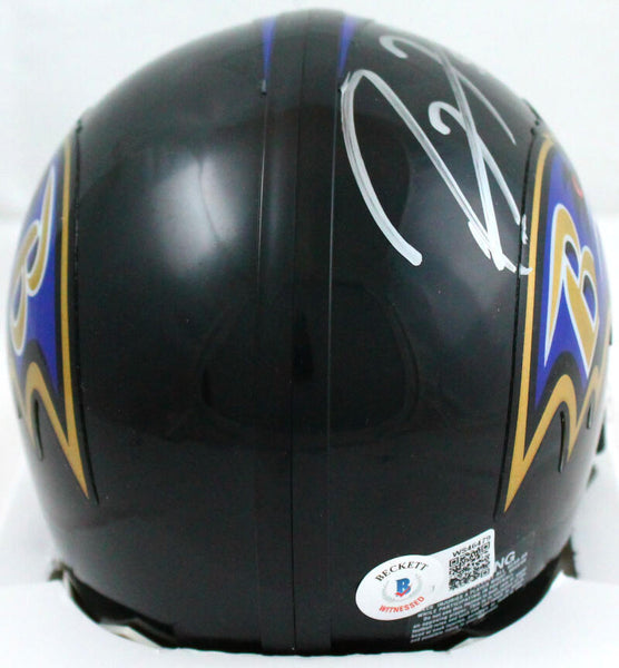 Ray Lewis Autographed Baltimore Ravens Mini Helmet w/ HOF-Beckett W Hologram *Silver This is a hand autograph of Ray Lewis of the Baltimore Ravens on a Riddell Football VSR4 Mini Helmet with Hall of Fame inscription. This item has a Beckett Witnessed Authentication, which comes with a numbered hologram and a QR code for verification. You can view this item on the Beckett Authentication website, it shows when and where the item was signed. It was signed either at a public autograph appearance or a private signing. This is a stock photo of the item. Although you may not receive this exact item, the item you receive is virtually identical, brand new, and in great shape.