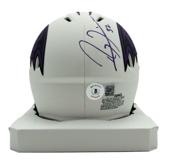 Ray Lewis HOF Signed/Autographed Baltimore Ravens White Lunar Eclipse Mini Football Helmet. This helmet is authenticated by BAS/Beckett and includes their Tamper-proof Hologram Sticker.