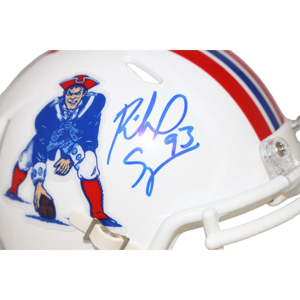 Richard Seymour Signed New England Patriots TB Mini Helmet Beckett 42363 The number in the listing title is just an inventory sku for our records and is not the authentication number. The item pictured is a stock photo unless otherwise noted. This is a New England Patriots Throwback Mini Helmet that was personally autographed by Richard Seymour. Includes a certificate of authenticity from Beckett Authentication Services (BAS) and Denver Autographs.