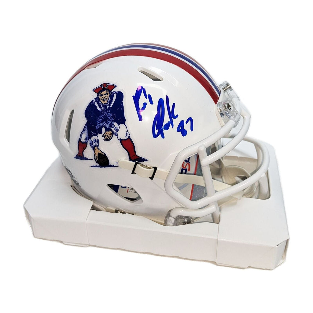 This New England Pats Throwback Mini Helmet has been hand signed by Rob Gronkowski - PSA Authentication