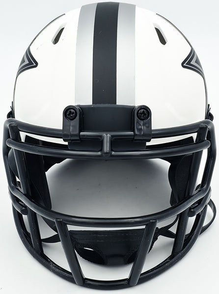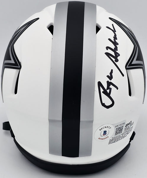 This is a Dallas Cowboys Lunar Eclipse White Speed Mini Helmet that has been hand signed by Roger Staubach. This item has been witnessed and certified authentic by Beckett Authentication (BAS) and comes with their tamper-proof witness hologram.