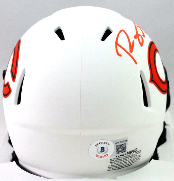 Roquan Smith Autographed Chicago Bears Lunar Speed Mini Helmet- Beckett W *Orange This is a Roquan Smith of the Chicago Bears hand autographed Riddell Football Lunar Speed Mini Helmet. This item has a Beckett Witnessed Authentication, which comes with a numbered and a matching Beckett Certificate of Authenticity. You can view this item on the Beckett Authentication website and it shows when and where the item was signed. It was signed either at a public autograph appearance or a private signing. This is a stock photo of the item. Although you may not receive this exact item, the item you receive is virtually identical, brand new, and in great shape.