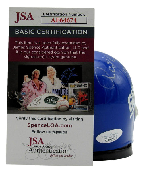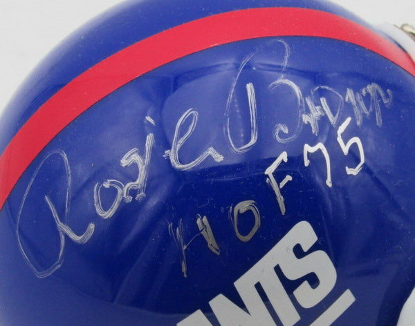 Rosie Brown HOF Autographed/Inscribed "HOF 75" Blue Micro Football Helmet New York Giants. This helmet is authenticated by JSA and includes their Tamper-proof Hologram Sticker and Certificate of Authenticity.