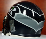 This is a Seattle Seahawks Speed Mini Helmet that has been hand signed by Russell Wilson. This one is signed in silver. This item has the official tamper-proof Russell Wilson serial numbered hologram and matching certificate of authenticity.