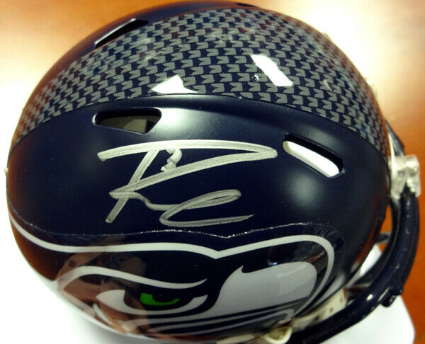 RUSSELL WILSON AUTOGRAPHED SEAHAWKS SPEED MINI HELMET IN SILVER RW HOLO 71468