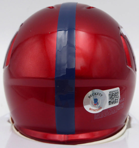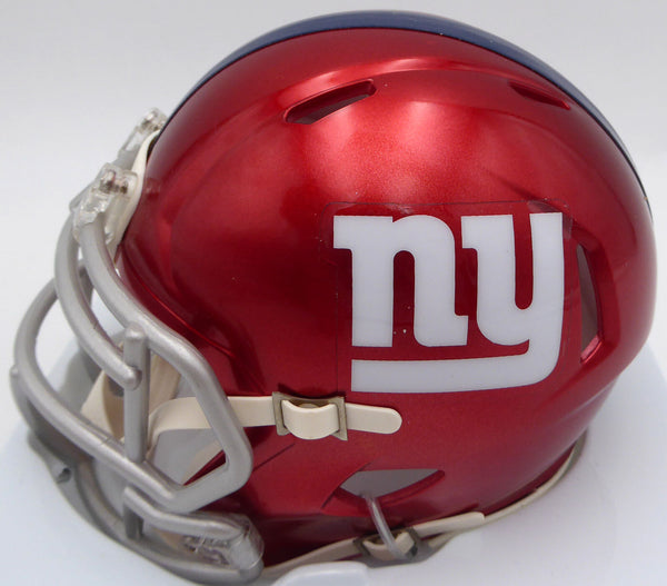 This is a New York Giants Flash Red Mini Helmet that has been hand signed by Saquon Barkley. This item has been certified authentic by Beckett Authentication (BAS) and comes with their tamper-proof QR Code sticker that can be verified on the Beckett-authentication.com.