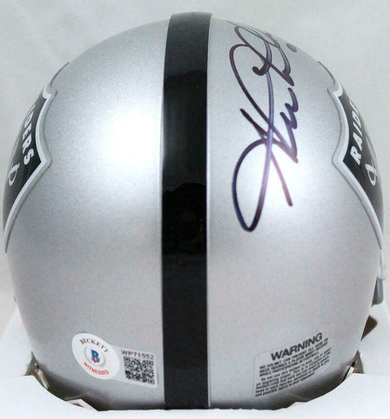 Shane Lechler Autographed Oakland Raiders Mini Helmet w/Insc.-Beckett W Hologram *Black This is a Hand Autographed Helmet of Shane Lechler of The Oakland Raiders. This is a Riddell Football Mini Helmet. Inscribed Just Win Baby. This item has a Beckett Witness Authentication, which Comes with a Beckett #'ed hologram and a generic Beckett COA. You can view this item on the Beckett website and it shows when and where the item was signed. It was signed either at a public autograph appearance or a Private Signing. This is a stock photo of the item. Although you may not receive this exact item, the item you receive is virtually identical and brand new in great shape.