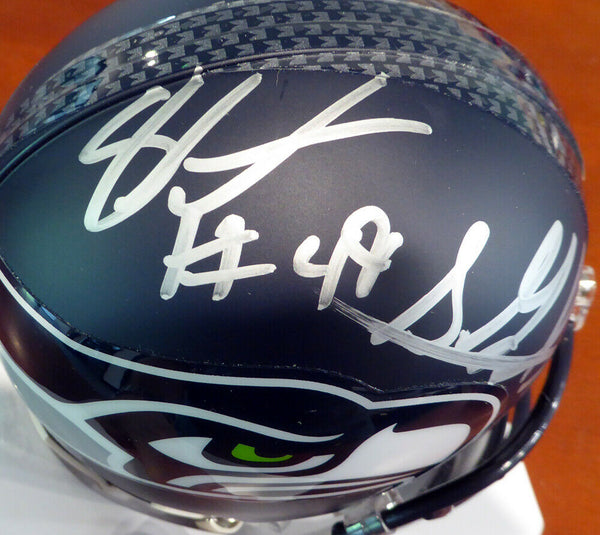 This is a Seattle Seahawks Mini Helmet that has been hand signed by Shaquem & Shaquill Griffin. This item was signed in the presence of a Mill Creek Sports representative and comes with their serial numbered hologram and matching certificate of authenticity.