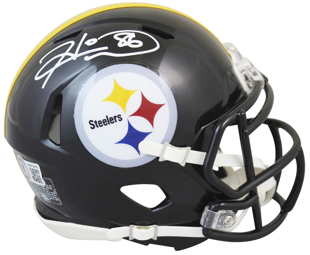 This Autographed Speed Mini Helmet has been Personally Signed by Hines Ward of the Pittsburgh Steelers. This item is 100% Authentic to include a hologram by Beckett Authentication Services. This item may come with the new Beckett Authentication hologram that has a scannable QR code rather than the traditional COA. If you would like to have a COA, you are welcome to reach out to Beckett for a printed certification once you receive your item. This is a BAS Witnessed Protection Program item which means a Beckett Authentication Service representative was present when this item was being signed. This is a stock item. We conducted an autograph signing with Hines Ward and we have several of these available. The one you will receive will be of equal quality to the one pictured. This item can be verified through BAS Witnessed.