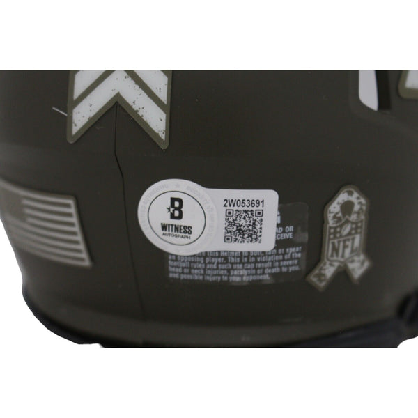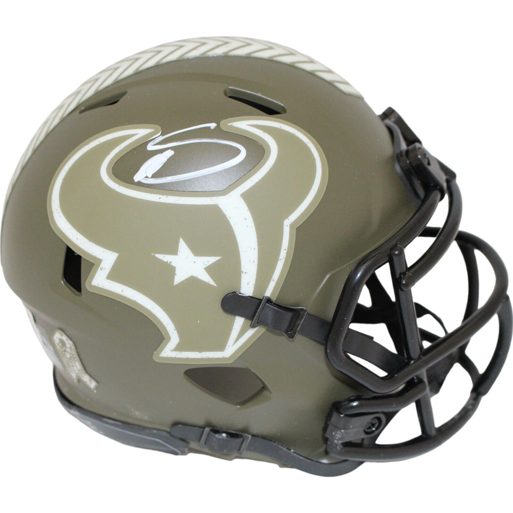 The number in the listing title is just an inventory sku for our records and is not the authentication number. The item pictured is a stock photo unless otherwise noted. This is a Houston Texans 2022 Salute to Service Mini Helmet that was personally autographed by Stefon Diggs. Includes a certificate of authenticity from Beckett Authentication Services (BAS) and Denver Autographs.
