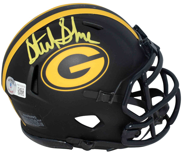 Sterling Sharpe, former All-Pro wide receiver for the Green Bay Packers, has hand signed this Packers Riddell Speed Eclipse mini helmet at a private signing. This item is authenticated by Beckett Authentication Services and was signed in the presence of one of their representatives. Their tamper-evident hologram featuring a QR code and serial number is on the item. The authenticity can be verified online by entering the serial number or scanning the QR code.Item pictured may not be the exact item you will receive. It will be similar quality, and we guarantee your satisfaction.