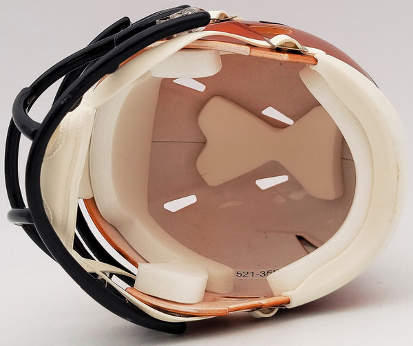 This is a Denver Broncos Flash Orange Speed Mini Helmet that has been hand signed by Steve Atwater. The Flash helmets are very delicate and often have some marks or scratches on them. This item has been certified authentic by Beckett Authentication (BAS) and comes with their tamper-proof QR Code sticker that can be verified on the Beckett-authentication.com.