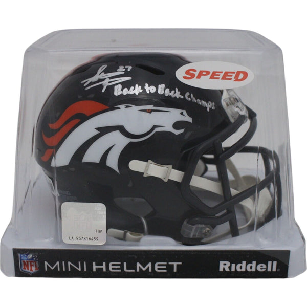 The number in the listing title is just an inventory sku for our records and is not the authentication number. The item pictured is a stock photo unless otherwise noted. This is a Denver Broncos Throwback '97-'23 Speed Mini Helmet that was personally autographed by Steve Atwater with "Back to Back Champs" inscription. Includes a certificate of authenticity from Beckett Grading Services (BAS) and Denver Autographs.