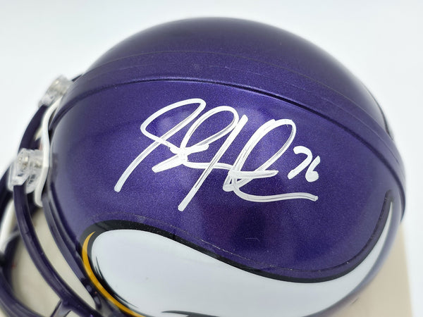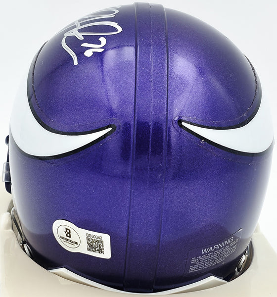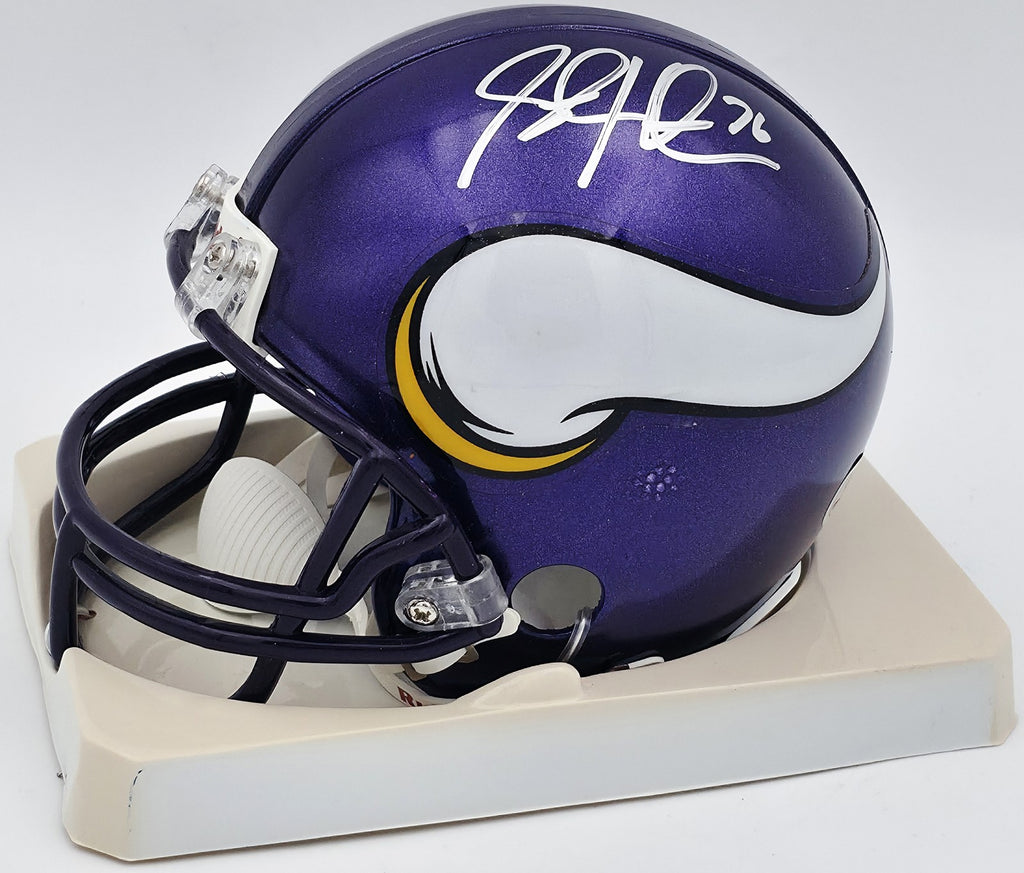 This is a Minnesota Vikings Purple Mini Helmet that has been hand signed by Steve Hutchinson. This item has been certified authentic by Beckett Authentication (BAS) and comes with their tamper-proof QR Code hologram.