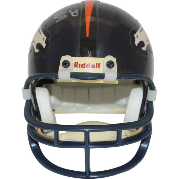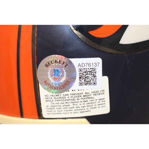 The number in the listing title is just an inventory sku for our records and is not the authentication number. This is the exact item that you will receive so please see pictures for condition. This is a Denver Broncos VSR4 replica mini helmet that was personally autographed by Terrell Davis. Includes a certificate of authenticity from Beckett Authentication Services (BAS) and Denver Autographs.