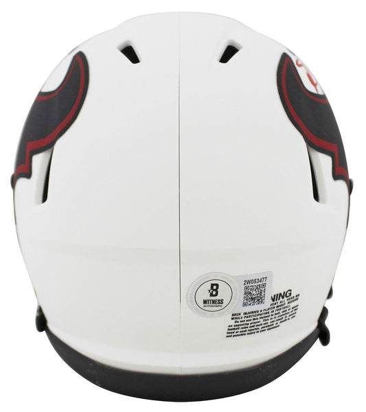 This Autographed Alternate Lunar Speed Mini Helmet W/ Uv Mirrored Back Acrylic Display Case has been Personally Signed by Stefon Diggs of the Houston Texans. This item is 100% Authentic to include a hologram by Beckett Authentication Services. This item will come with an affixed Beckett Authentication Services (BAS) authentication sticker, which includes a scannable QR code to verify authenticity. Please note that Beckett no longer provides serial-numbered COA cards, and the attached BAS sticker will serve as the complete authentication for this item. This is a BAS Witnessed Protection Program item which means a Beckett Authentication Service representative was present when this item was being signed. We conducted an autograph signing with Stefon Diggs where multiples of the same item were signed. While the photographs are representative of this item, the size, placement and strength of the signature may vary. Each item is hand signed, therefore, each autograph is unique. This item can be verified through BAS Witnessed.