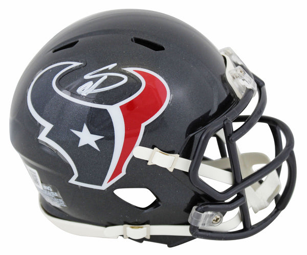 This Autographed Speed Mini Helmet has been Personally Signed by Stefon Diggs of the Houston Texans. This item is 100% Authentic to include a hologram by Beckett Authentication Services. This item will come with an affixed Beckett Authentication Services (BAS) authentication sticker, which includes a scannable QR code to verify authenticity. Please note that Beckett no longer provides serial-numbered COA cards, and the attached BAS sticker will serve as the complete authentication for this item. This is a BAS Witnessed Protection Program item which means a Beckett Authentication Service representative was present when this item was being signed. We conducted an autograph signing with Stefon Diggs where multiples of the same item were signed. While the photographs are representative of this item, the size, placement and strength of the signature may vary. Each item is hand signed, therefore, each autograph is unique. This item can be verified through BAS Witnessed.