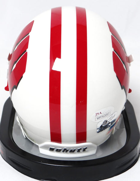 This is a hand autographed Mini Helmet of TJ Watt of the Wisconsin Badgers. This is a Schutt Football Mini Helmet. This item has a James Spence Witness Authentication, which comes with a JSA #'ed Sticker and a Matching JSA COA. You can view this item on the Spence LOA website, and it shows when and where the item was signed. It was signed either at a public autograph appearance or a private signing. This photo is the exact item that you will be receiving. Please see pictures for further details. This is a hand autographed Mini Helmet of TJ Watt of the Wisconsin Badgers. This is a Schutt Football Mini Helmet. This item has a James Spence Witness Authentication, which comes with a JSA #'ed Sticker and a Matching JSA COA. You can view this item on the Spence LOA website, and it shows when and where the item was signed. It was signed either at a public autograph appearance or a private signing. This photo is the exact item that you will be receiving. Please see pictures for further details.