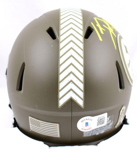 TJ Watt Autographed Steelers Salute to Service Speed Mini Helmet- Beckett W Holo