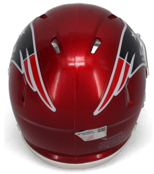 This new england patriots flash mini speed helmet has been personally hand-signed by tom brady. it is officially licensed by the national football league and comes with an individually numbered, tamper-evident hologram from fanatics authentic. to ensure authenticity, the hologram can be reviewed online. this process helps to ensure that the product purchased is authentic and eliminates any possibility of duplication or fraud.