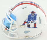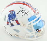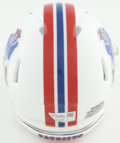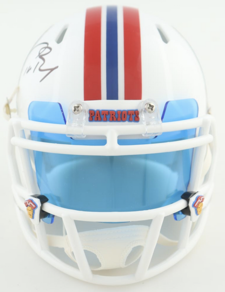 This mini throwback speed helmet has been personally hand-signed by tom brady. included with this helmet is a custom visor and 3d bumpers and decals. this has to be seen in person to truly appreciate how amazing it it. it is officially licensed by the national football league and comes with an individually numbered, tamper-evident hologram from fanatics authentic. to ensure authenticity, the hologram can be reviewed online. this process helps to ensure that the product purchased is authentic and eliminates any possibility of duplication or fraud.