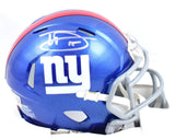 Tommy DeVito Autographed New York Giants Speed Mini Helmet-Beckett W Hologram *Silver This is a hand autographed helmet of Tommy DeVito of the New York Giants. This is a Riddell Football Speed Mini Helmet. This item has a Beckett Witnessed Authentication, which comes with a numbered hologram and a QR code for verification. You can view this item on the Beckett Authentication website and it shows when and where the item was signed. It was signed either at a public autograph appearance or a private signing. This is a stock photo of the item. Although you may not receive this exact item, the item you receive is virtually identical and brand new in great shape.