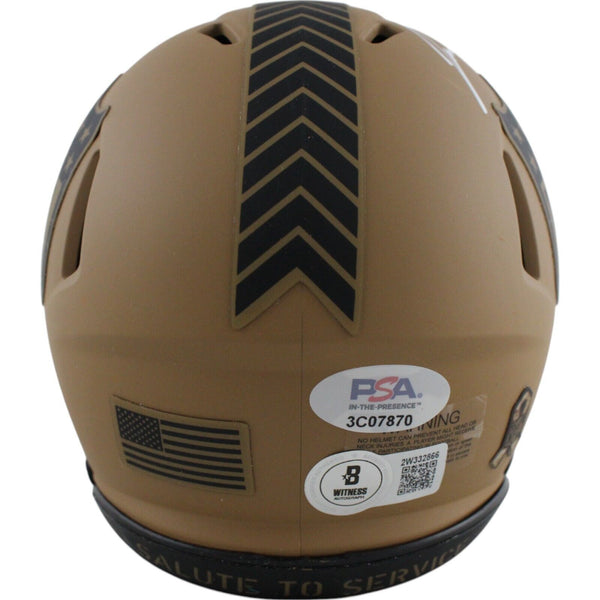 The number in the listing title is just an inventory sku for our records and is not the authentication number. This is a stock photo, unless otherwise noted. This is a NFL Shield 2023 Salute to Service Mini Helmet that was personally autographed by Travis Kelce and Jason Kelce. Includes a certificate of authenticity from Beckett Authentication Services (BAS), Proffesional Sports Authenticator (PSA/DNA) and Denver Autographs.