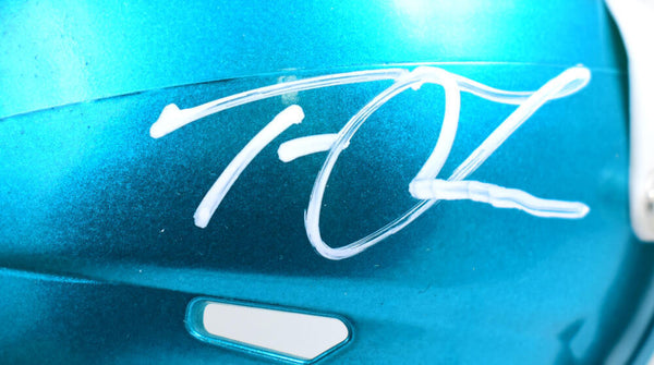Trevor Lawrence, star quarterback for the Jacksonville Jaguars, has hand signed this Jaguars Riddell Speed Flash mini helmet at a private signing. This item comes with a serial-numbered hologram from Fanatics Authentic, one of the leaders in the industry. The authenticity can be verified online by entering the serial-number. A Fanatics Authentic information card is also included.Item pictured may not be the exact item you will receive. It will be similar quality, and we guarantee your satisfaction.