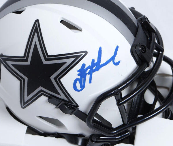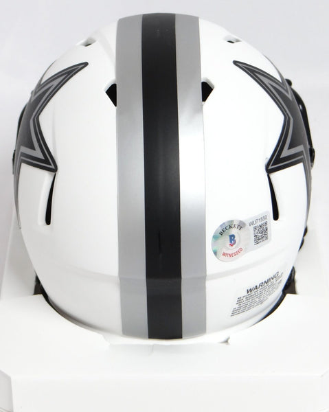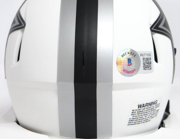 This is a hand autograph of Troy Aikman of the Dallas Cowboys on a Riddell Football Lunar Speed Mini Helmet. It has a Beckett Authentication, which comes with a numbered and a matching Beckett Certificate of Authenticity. You can view this item on the Beckett Authentication website, and it shows when and where the item was signed. It was signed either at a public autograph appearance or a private signing. This photo is the exact item that you will be receiving. Please see pictures for further details. This is a hand autograph of Troy Aikman of the Dallas Cowboys on a Riddell Football Lunar Speed Mini Helmet. It has a Beckett Authentication, which comes with a numbered and a matching Beckett Certificate of Authenticity. You can view this item on the Beckett Authentication website, and it shows when and where the item was signed. It was signed either at a public autograph appearance or a private signing. This photo is the exact item that you will be receiving. Please see pictures for further details.
