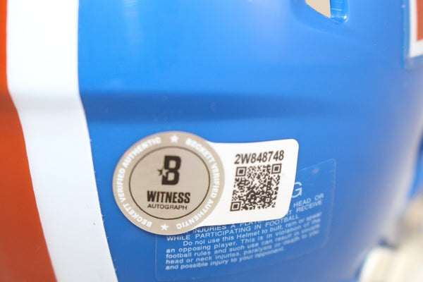 The number in the listing title is just an inventory sku for our records and is not the authentication number. The item pictured is a stock photo unless otherwise noted. This is a Denver Broncos Throwback 1976-1996 Mini Helmet that was personally autographed by Troy Franklin. Includes a certificate of authenticity from Beckett Authentication Services (BAS) and Denver Autographs. FREE SHIPPING within the USA on orders over $10!