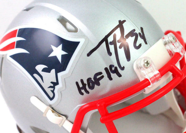 Ty Law Autographed New England Patriots Mini Helmet w/HOF - Beckett W *Black This is a Ty Law of the New England Patriots hand autographed Riddell Football Mini Helmet. This item has a Beckett Witnessed Authentication, which comes with a numbered and a matching Beckett Certificate of Authenticity. You can view this item on the Beckett Authentication website, it shows when and where the item was signed. It was signed either at a public autograph appearance or a private signing. This is a stock photo of the item. Although you may not receive this exact item, the item you receive is virtually identical, brand new, and in great shape.
