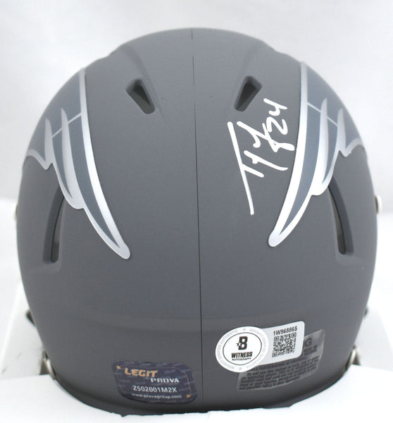 This is a Ty Law of the New England Patriots hand autographed Riddell Football Slate Speed Mini Helmet. It has a Beckett Witnessed Authentication, which comes with a numbered hologram and a QR code for verification. You can view this item on the Beckett Authentication website and it shows when and where the item was signed. It was signed either at a public autograph appearance or a private signing. This is a stock photo of the item. Although you may not receive this exact item, the item you receive is virtually identical, brand new, and in great shape. This is a Ty Law of the New England Patriots hand autographed Riddell Football Slate Speed Mini Helmet. It has a Beckett Witnessed Authentication, which comes with a numbered hologram and a QR code for verification. You can view this item on the Beckett Authentication website and it shows when and where the item was signed. It was signed either at a public autograph appearance or a private signing. This is a stock photo of the item. Although you may not receive this exact item, the item you receive is virtually identical, brand new, and in great shape.