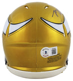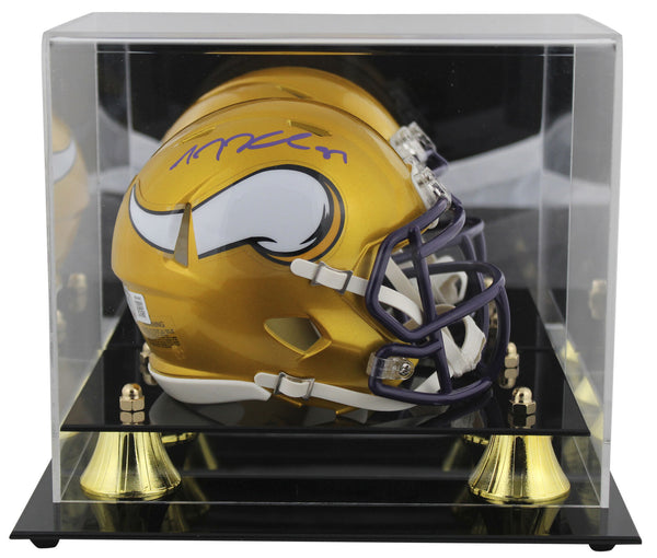 This Autographed Alternate Flash Speed Mini Helmet W/ Uv Mirrored Back Acrylic Display Case has been Personally Signed by T.J. Hockenson of the Minnesota Vikings. This item is 100% Authentic to include a hologram by Beckett Authentication Services. This item will come with an affixed Beckett Authentication Services (BAS) authentication sticker, which includes a scannable QR code to verify authenticity. Please note that Beckett no longer provides serial-numbered COA cards, and the attached BAS sticker will serve as the complete authentication for this item. This is a BAS Witnessed Protection Program item which means a Beckett Authentication Service representative was present when this item was being signed. We conducted an autograph signing with T.J. Hockenson where multiples of the same item were signed. While the photographs are representative of this item, the size, placement and strength of the signature may vary. Each item is hand signed, therefore, each autograph is unique. This item can be verified through BAS Witnessed.