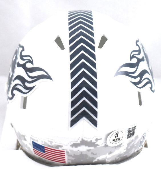 This is a hand autograph of Warren Moon of the Tennessee Titans on a Riddell Football Salute to Service 2024 Speed Mini Helmet. Inscribed HOF. This item has a Beckett Witnessed Authentication, which comes with a numbered hologram and a QR code for verification. You can view this item on the Beckett Authentication website and it shows when and where the item was signed. It was signed either at a public autograph appearance or a private signing. This is a stock photo of the item. Although you may not receive this exact item, the item you receive is virtually identical and brand new in great shape. This is a hand autograph of Warren Moon of the Tennessee Titans on a Riddell Football Salute to Service 2024 Speed Mini Helmet. Inscribed HOF. This item has a Beckett Witnessed Authentication, which comes with a numbered hologram and a QR code for verification. You can view this item on the Beckett Authentication website and it shows when and where the item was signed. It was signed either at a public autograph appearance or a private signing. This is a stock photo of the item. Although you may not receive this exact item, the item you receive is virtually identical and brand new in great shape.